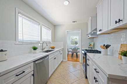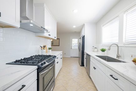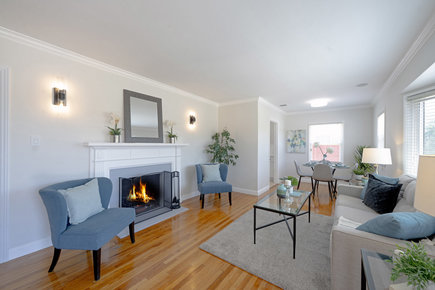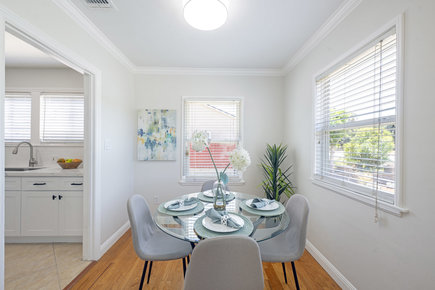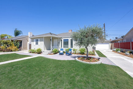 Welcome to this beautifully appointed 3-bed, 2-bath residence at 3430 Clark Ave in Long Beach, offering an enviable front view of the Sky Links Golf Course. Step through a beautifully landscaped front yard accented with pavers to a welcoming front porch. The spacious living room immediately impresses with its crown molding, a cozy fireplace featuring a brick hearth and mantle, and elegant single-plank wood flooring. The dining room, seamlessly flowing from the living space, boasts a large window with blinds, crown molding, a new light fixture, and surround sound, all set on single-plank wood flooring. The kitchen has been fully remodeled, designed for both beauty and function. It features pristine quartz countertops, a stylish subway tile backsplash, stainless steel appliances, custom cabinetry with new hardware, recessed lighting, and tile flooring with the added luxury of in-floor heating. There is also a convenient walk-in pantry that provides ample storage. Adjacent to the kitchen is a dedicated dining area, with a new chandelier and single-plank hardwood floors. The primary bedroom is a true spacious retreat, highlighted by a beamed ceiling, laminate flooring, a charming brick hearth and fireplace, a generous walk-in closet, a wall heater, and a slider offering direct access to the backyard. The primary bathroom has been beautifully updated with new tile flooring, a new vanity featuring stone countertops, custom cabinetry, and modern fixtures. For ultimate convenience, the laundry facilities are located within the primary bedroom suite. Bedrooms two and three offer comfort with a ceiling fan and light, as well as single-plank wood flooring, along with a practical walk-in closet. Bathroom two is elegantly updated with tile flooring, stone counters, and custom vanity, cabinetry, and fixtures, complete with a tub/shower combo. This home has been meticulously maintained and upgraded, with significant enhancements including newer insulation, updated windows, and recent interior and exterior paint. The home is equipped with an HVAC system and replaced ducting. Step outside to a private backyard oasis, beautifully finished with pavers and benefiting from yard sprinklers in both the front and back. The property also features rain gutters and partial copper plumbing. A two-car detached garage offers epoxy flooring and a dedicated office with laminate flooring. Enjoy an extended driveway for additional parking. Welcome to this charming, gorgeous home.